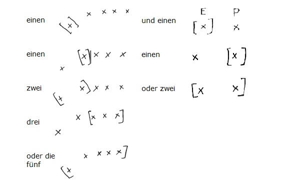 4. den Abstand zwischen der Zweiergruppe und der Dreiergruppe (innerhalb der Fünfergruppe).